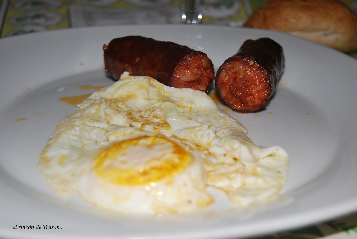 Tan sencillo como exquisito unos huevos fritos con un chorizo de "casa".
